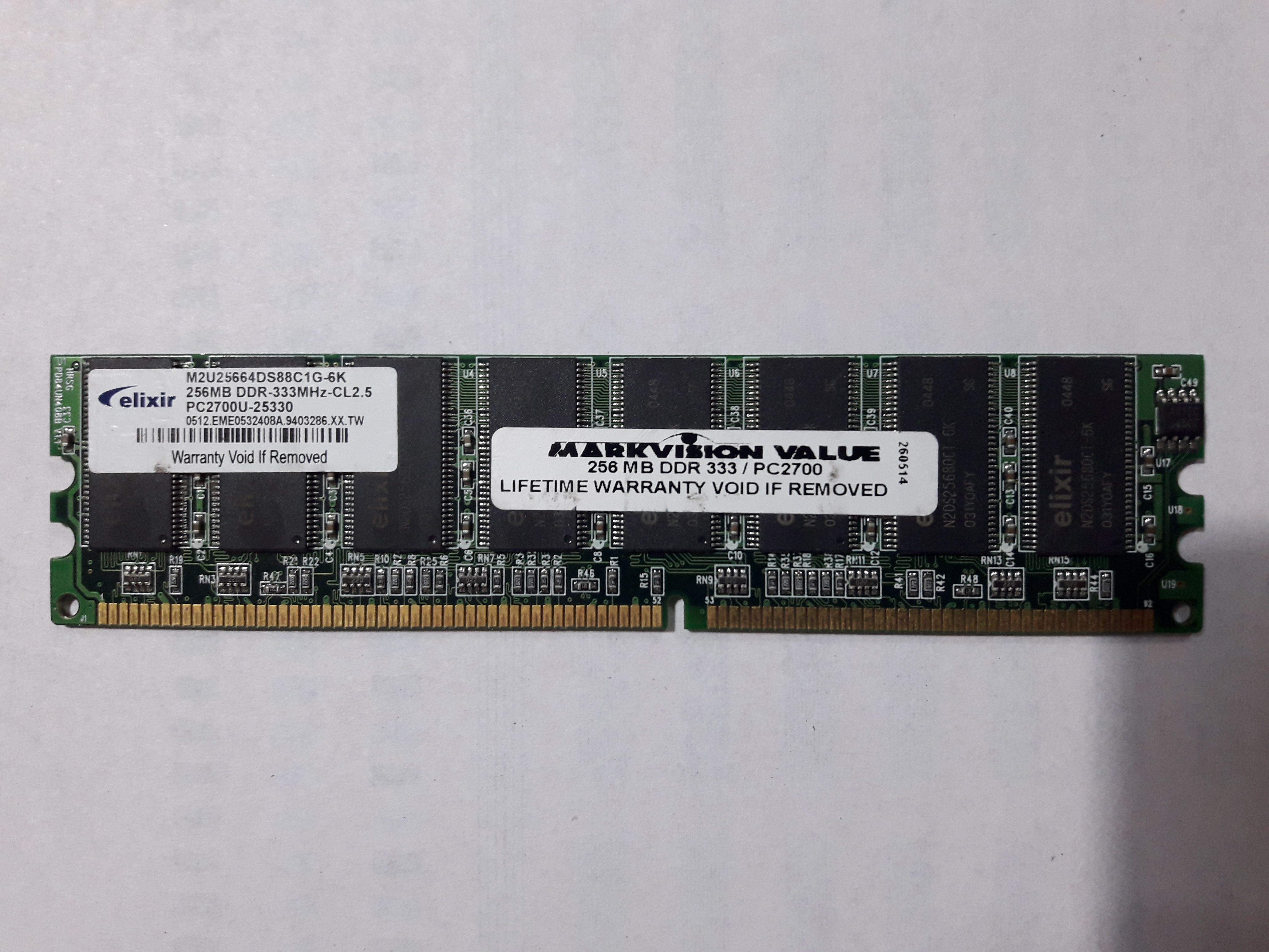 Elixir M2U25664DS88C1G-6K PC2700U-25330 256MB PC2700 333MHz