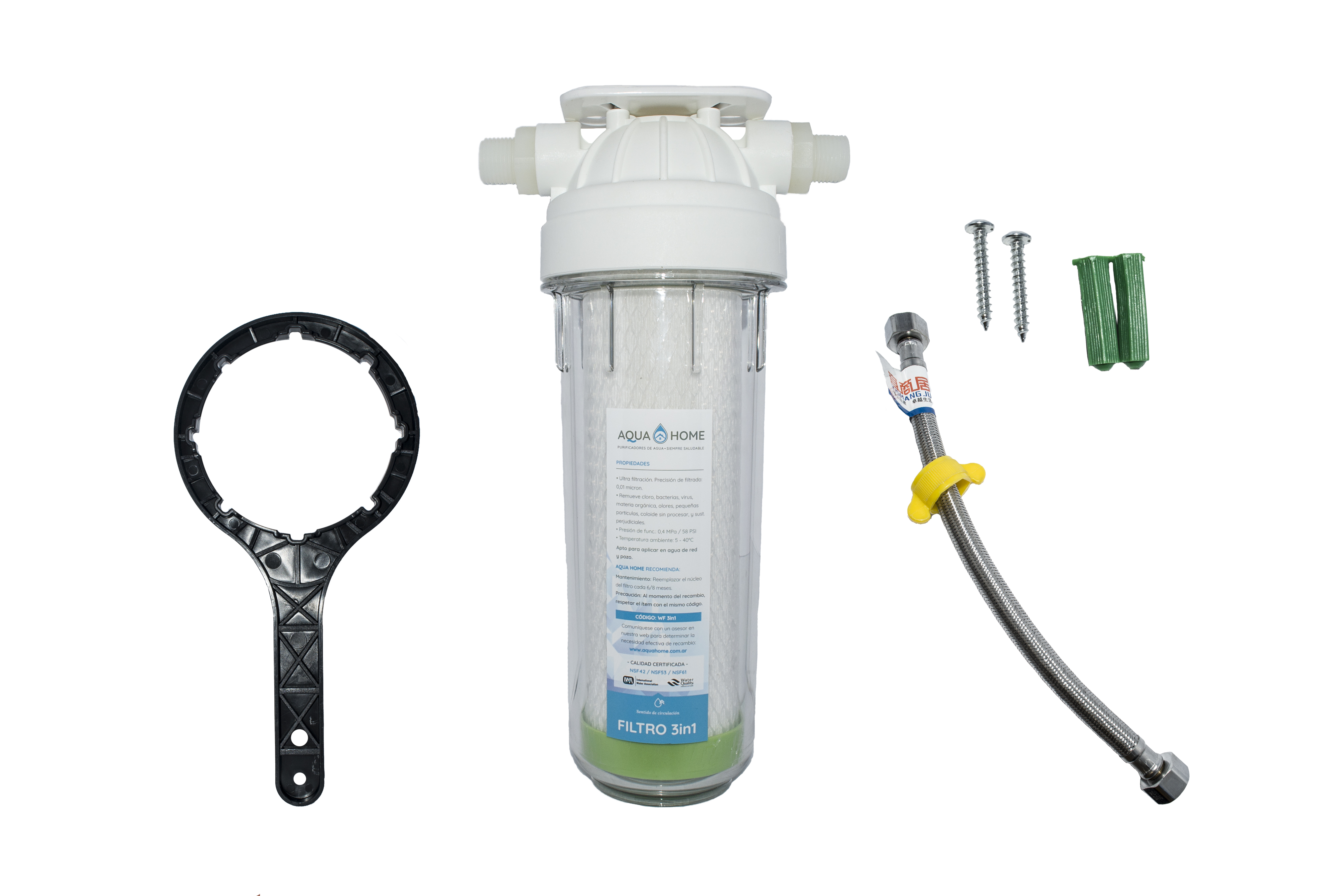 •Filtro de polipropileno de 5 micrones(PP): Atrapa sarro, lodo, polvo, oxido y arena que afectan el sabor y la apariencia del agua. Protege a los otros filtros de atascos y obstrucciones prematuras.