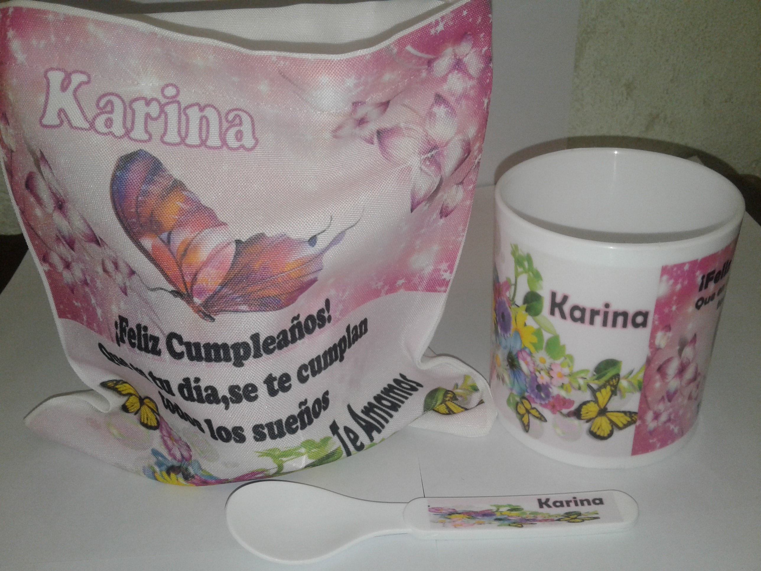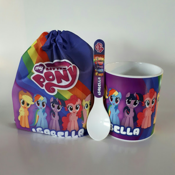 Taza de polímero+ bolsita+ cucharita diseñada con nombre