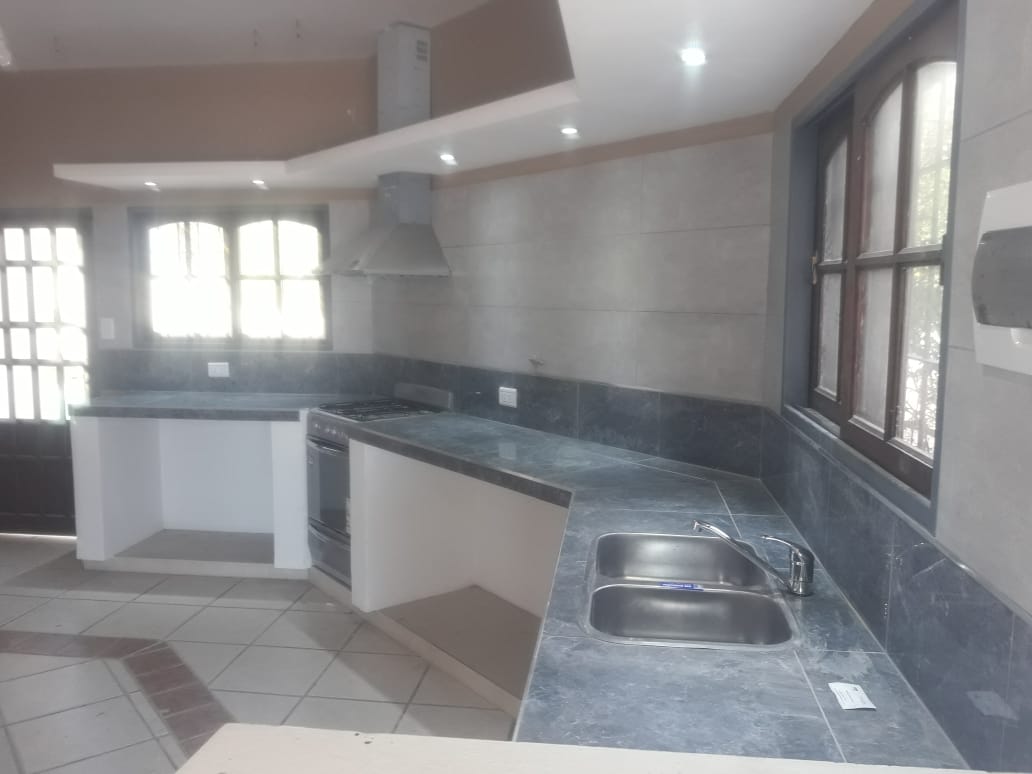 La casa cuenta con dos dormitorios, baño, amplia cocina con excelente iluminación, living comedor con salida a gran balcón. También cuenta con un departamento en planta baja, pileta y parque.