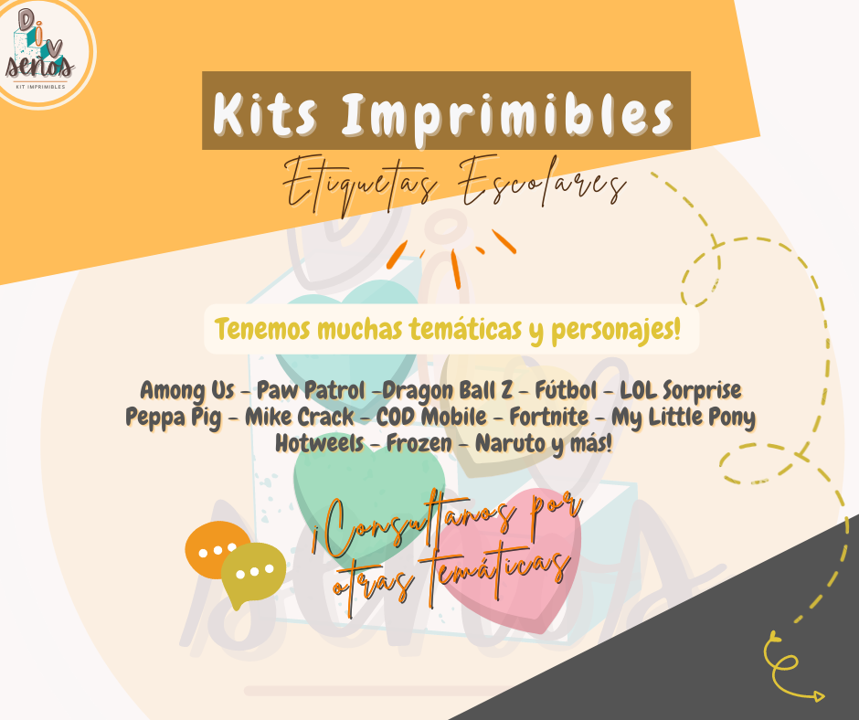 Con nuestros Kits Imprimibles escolares totalmente personalizados podrán etiquetar cualquiera de los útiles, con diferentes medidas para que puedan adaptarlos.