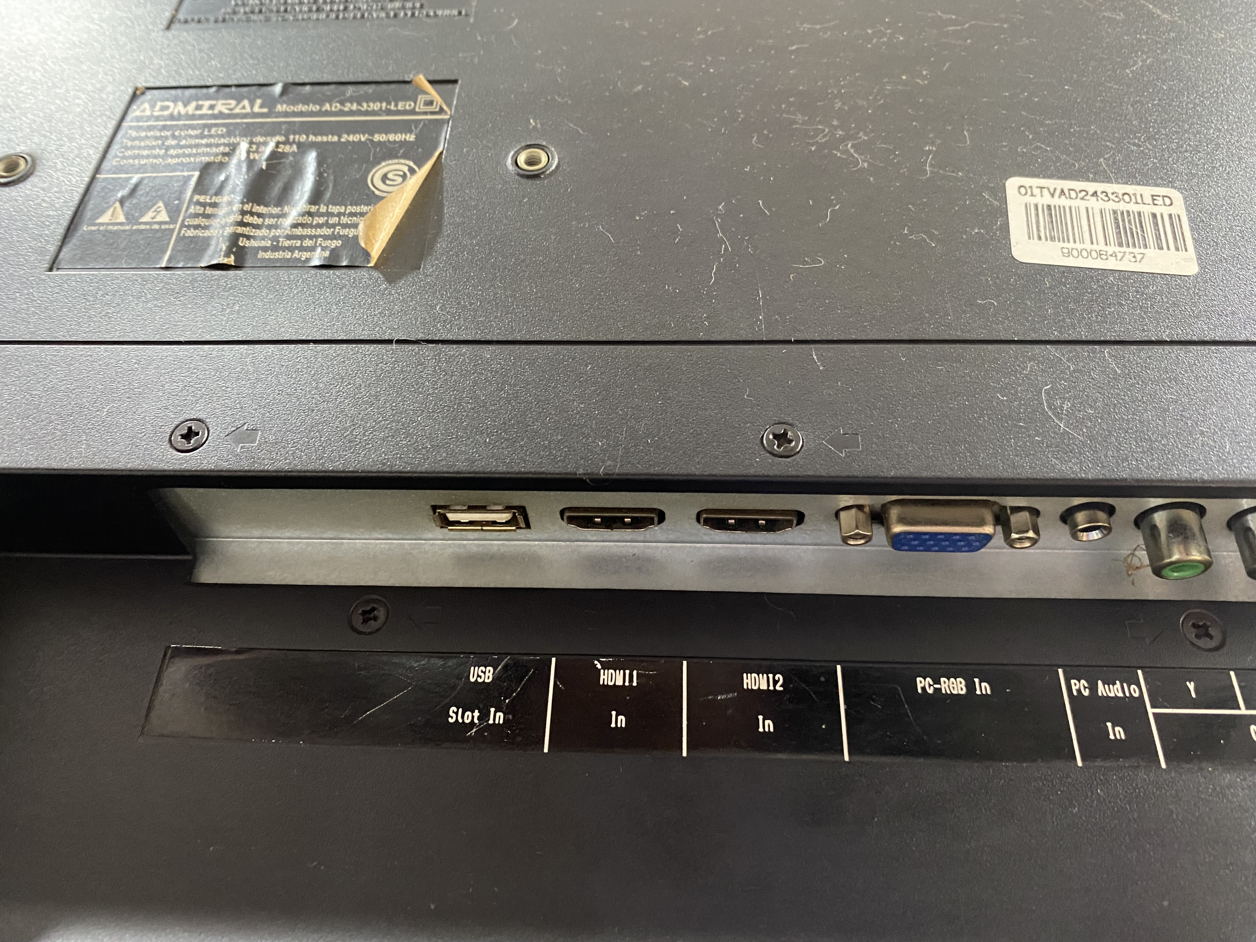TV LED ADMIRAL 24', conexión HDMI, VGA, USB, ETHERNET, con control remoto, funciona Perfecto.