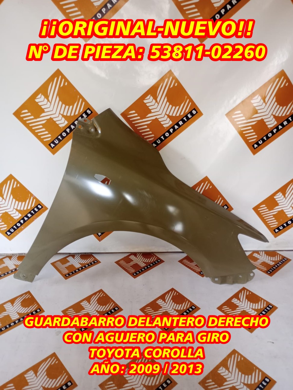 Guardabarro Del. Der. Con Giro Toyota Corolla 09/13 Ori